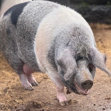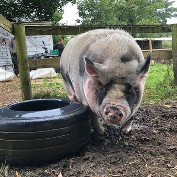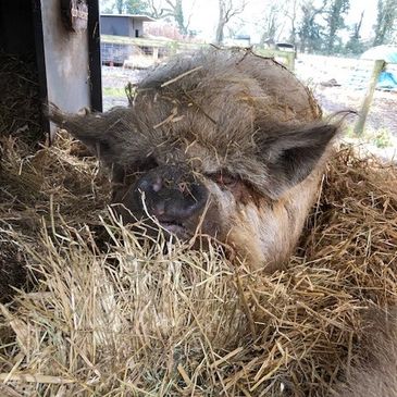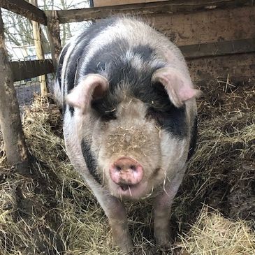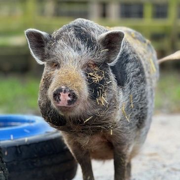 I'm Mr Pig and I came to live at Curly Tails in March 2023 when I was 9.5 years old.