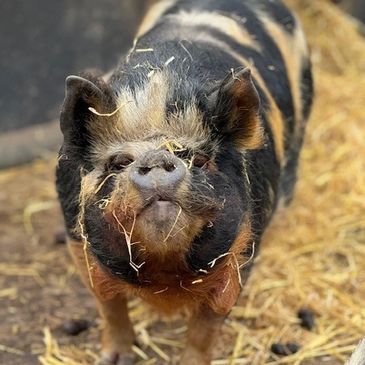 I was born in 2020 and I'm a Kune Kune although there might be a bit of something else in my breed mix.