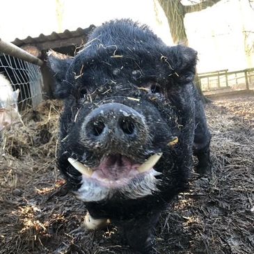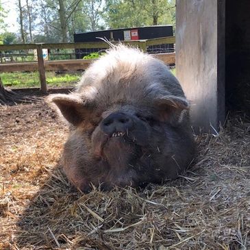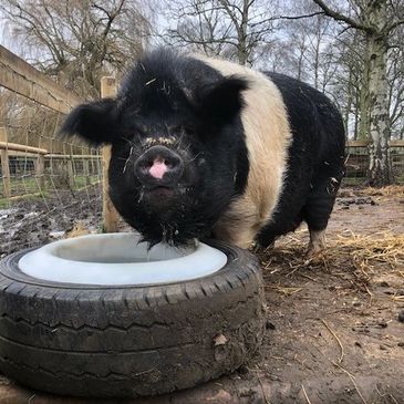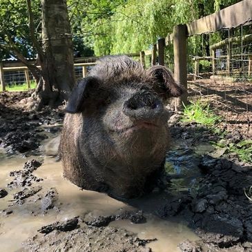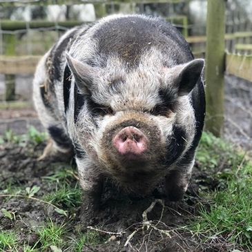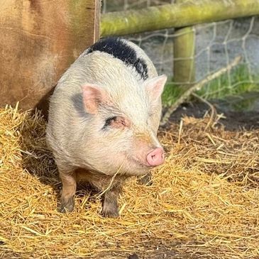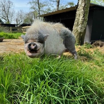 I'm Max and I was rescued by the RSPCA and brought to Curly Tails in 2023 as a young piglet. I was born earlier that year and found abandoned on a main road in Cheshire.