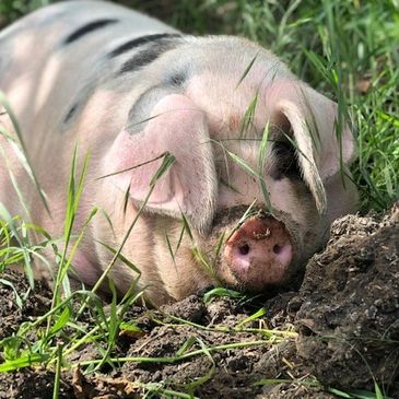 We are Large White/Old Spot/Boar Cross Pigs and came to live at Curly Tails on 28th July 2018.