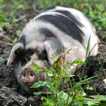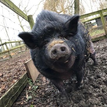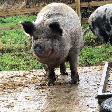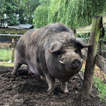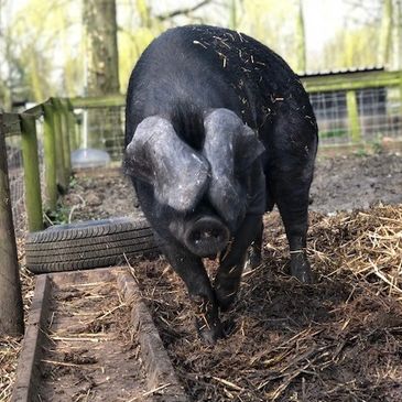 We are Pure Breed Large Black Pigs. We are 9.5 years old and came to live at Curly Tails in June 2017.
